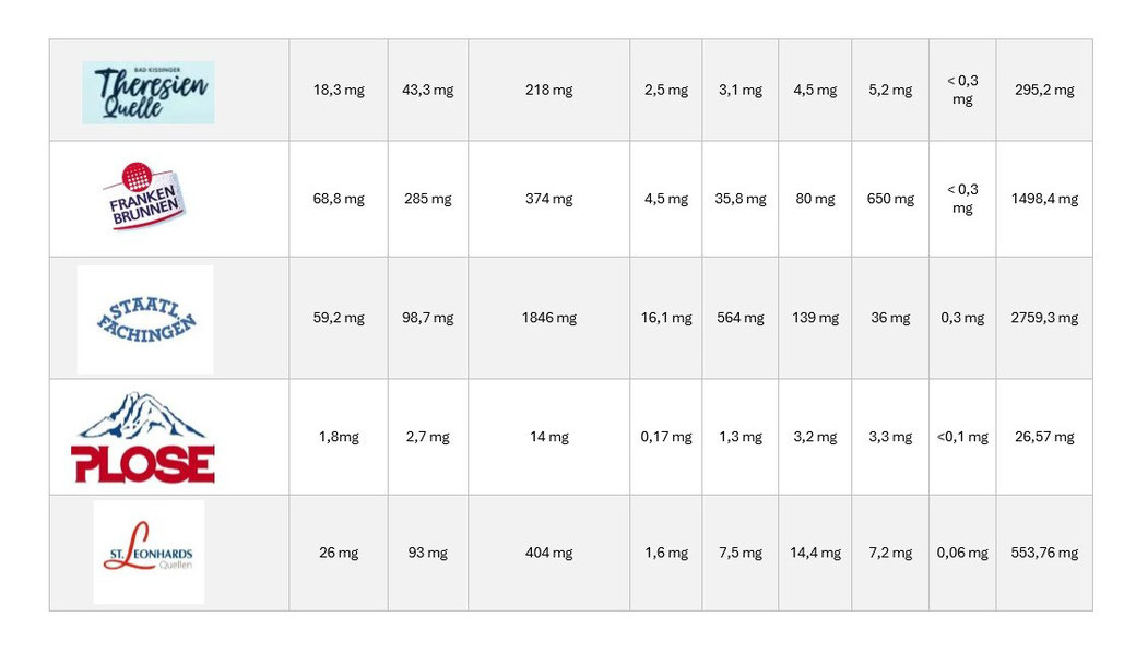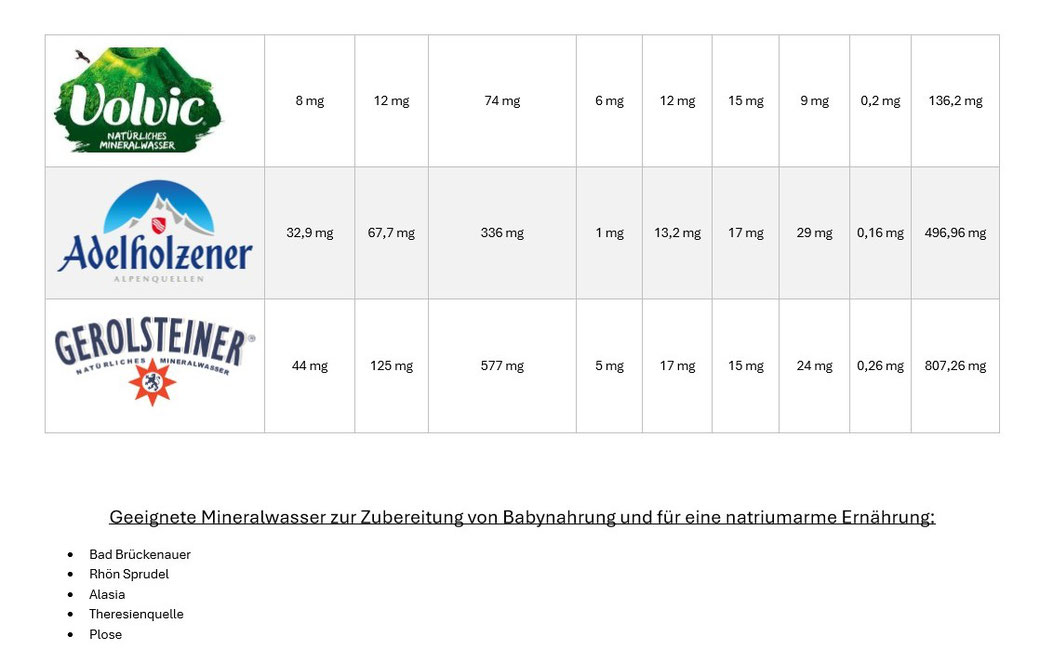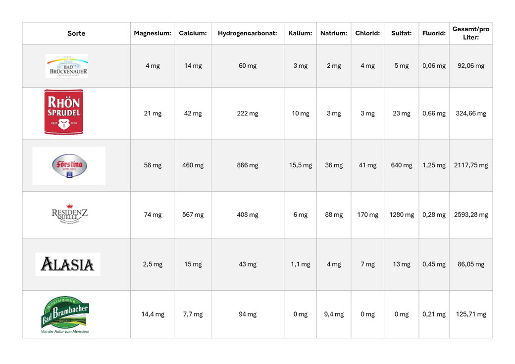 Solche Fragen kommen immer öfter...daher hier mal eine Übersicht unserer Mineralwasser und deren Inhaltsstoffe:
